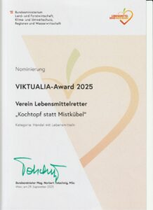 Unter dem Motto „Lebensmittel sind kostbar“ zeichnet der VIKTUALIA-Award innovative und wirkungsvolle Maßnahmen aus, die helfen, Lebensmittelabfälle zu vermeiden und zu verringern. Die Einreichungen waren von 10. April bis 22. Mai 2025 möglich.